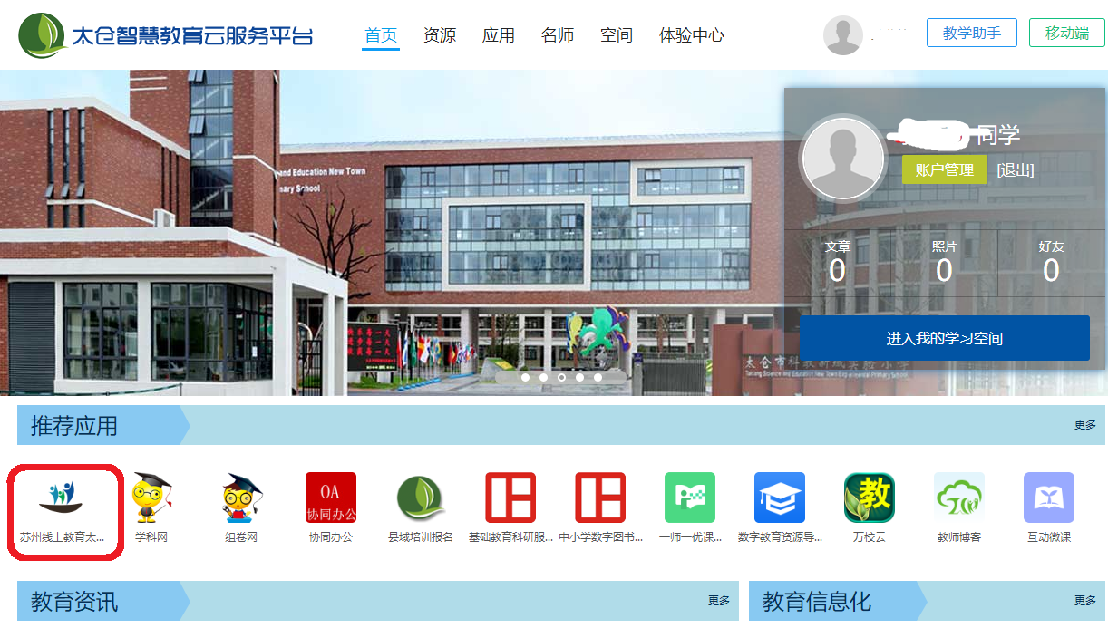 1、百度“太仓智慧教育云服务平台”,或者点这里【】